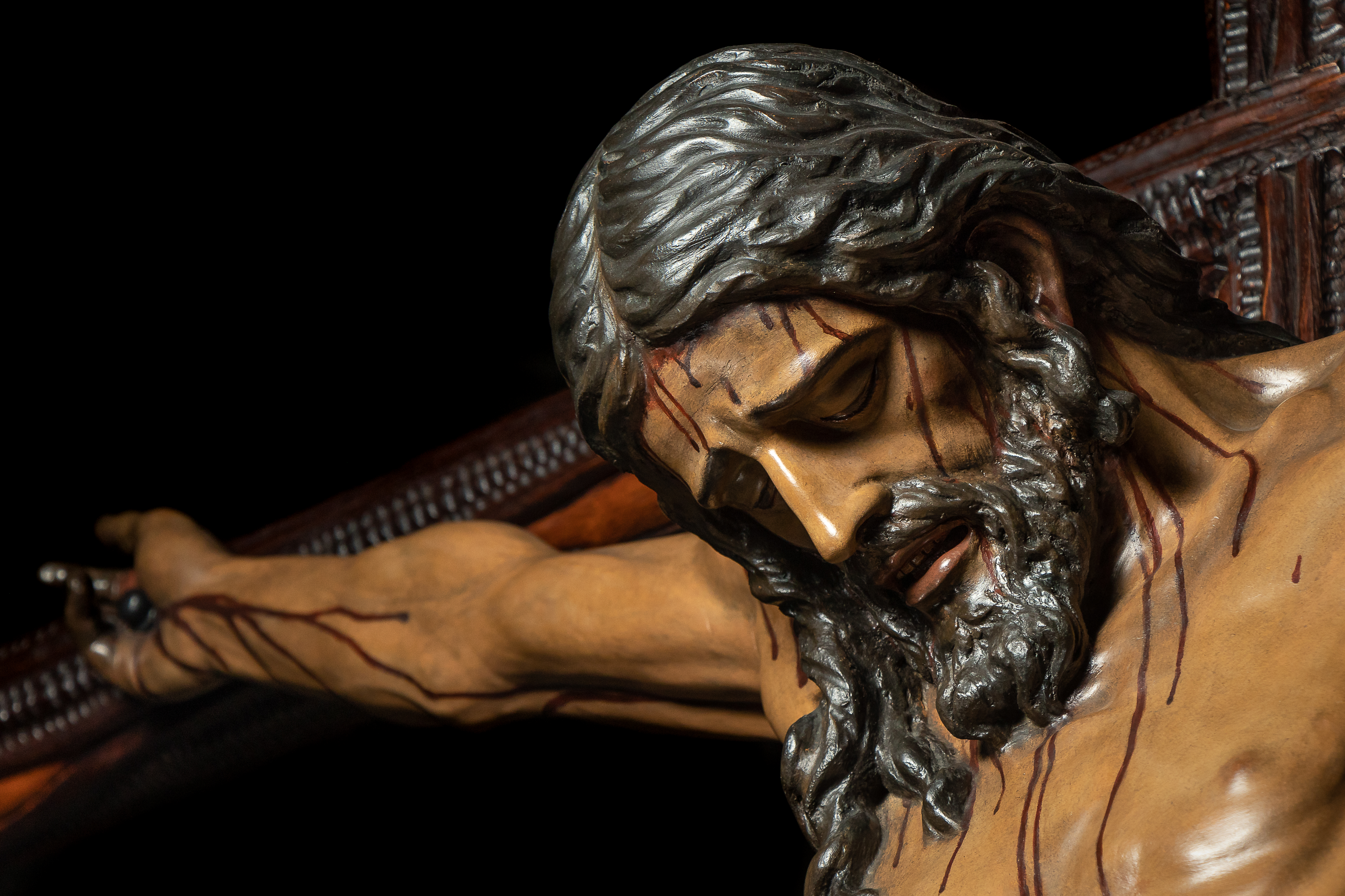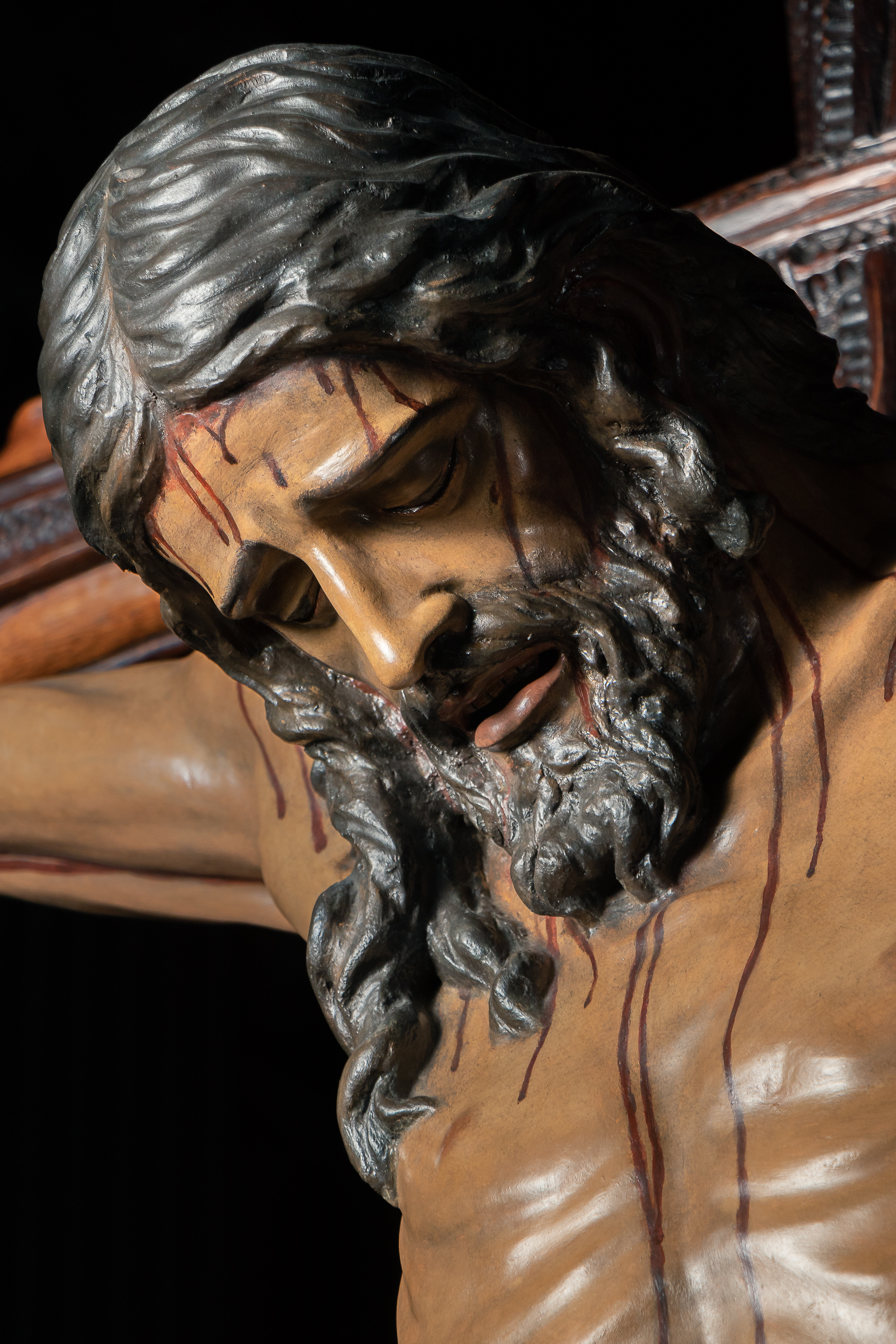Se trata de una imagen de crucificado muerto en la cruz, con tres clavos, y cabeza sin corona de espinas caída hacia la derecha. En 1978 sufrió un desgraciado accidente cuando un desconocido acuchilló a la imagen causándole numerosos arañazos principalmente en las piernas. Por tal motivo fue retirado del culto y restaurado por el escultor Manuel Domínguez. En 1993 se procedió a su restauración por Manuel Tobajas Villegas y en el año 2002 fue objeto de una intervención integral a cargo del profesor, escultor y restaurador Juan Manuel Miñarro.